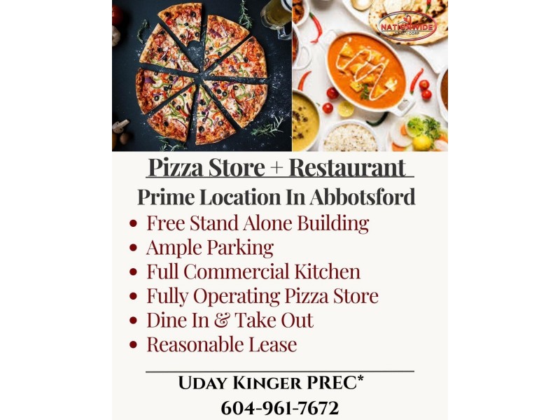 Turnkey Pizza & Restaurant situated at FREESTAND ALONE Building. This business offers huge growth potential. High-exposure - Prime Location! Situated on 10,000+ commercial Lot, 10' Commercial Hood, Walk-in Cooler and Ample Car Parking, ideal for Dine-In and Take-Out operations. The Lease is very Affordable, secured until May 2028 with 3 years renewal option. DON'T APPROACH DIRECTLY, NEED APPOINTMENT FOR SHOWING.
